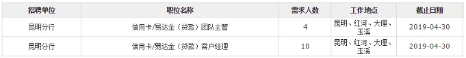 (二)信用卡/易達金(貸款)客戶經理(工作地點可選擇:昆明、紅河、大理、玉溪)