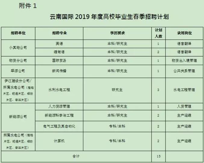 招聘專業(yè)見云南國(guó)際2019年度高校畢業(yè)生春季招聘計(jì)劃(附件1)。