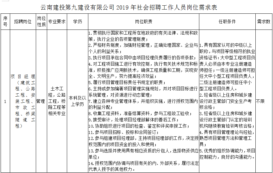 與原單位簽訂正式合同,最高學(xué)歷大專及以上,有一定的項目管理經(jīng)驗,持有建造師證書或者中級以上職稱證有限考慮。