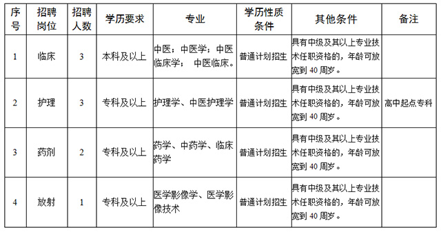 詳見(jiàn)附件1《曲靖市馬龍區(qū)中醫(yī)醫(yī)院2019年公開(kāi)招聘編外聘用人員計(jì)劃表》。